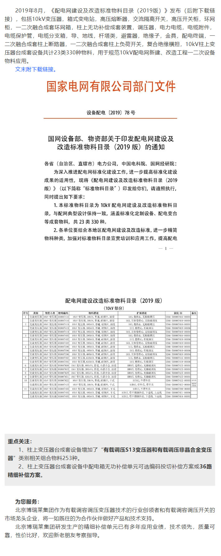 北京博瑞莱智能科技集团有限公司是一家专业从事智能化配电产品研发、生产、销售的装备制造企业,主要产品有自动调容调压组合式变压器、智能型高压断路器、精细化节能补偿装置等三大系列产品。